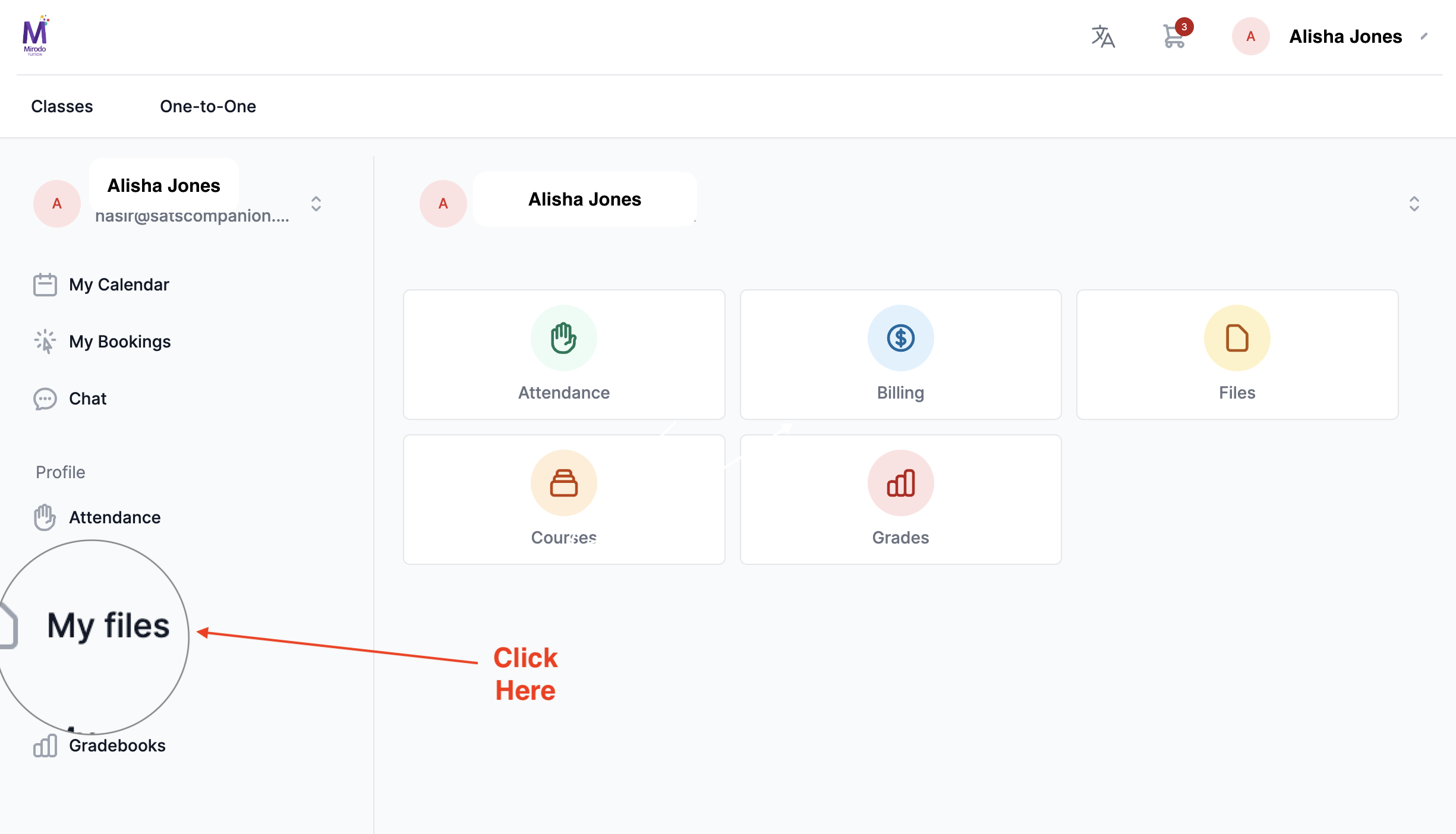 Step 2: On the dashboard is a folder called 'My Files'. Please click on this.